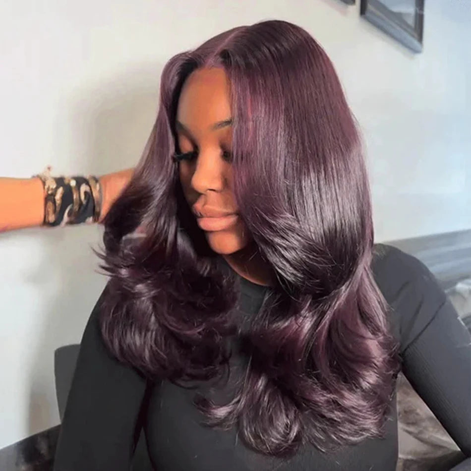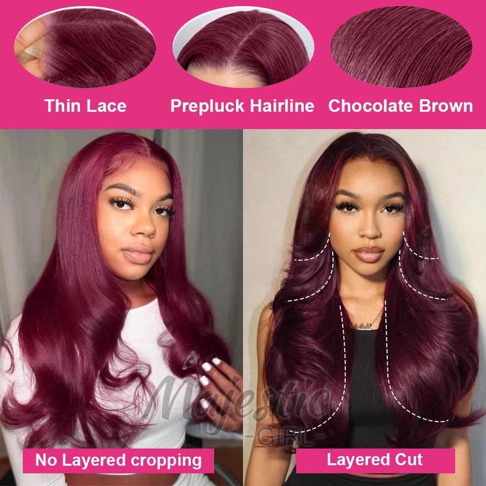 250 Density Dark Burgundy 9x6 Glueless Wigs Human Hair